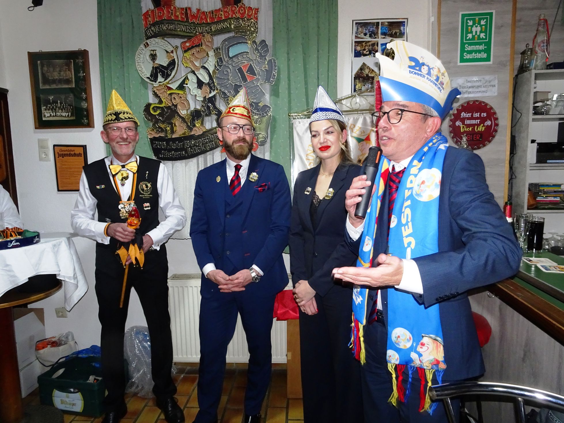 designiertes Prinzenpaar Prinz Roland I (Gerwing) und Bonna Stephanie III (Schulz) mit Vizepräsident Mirko Feld