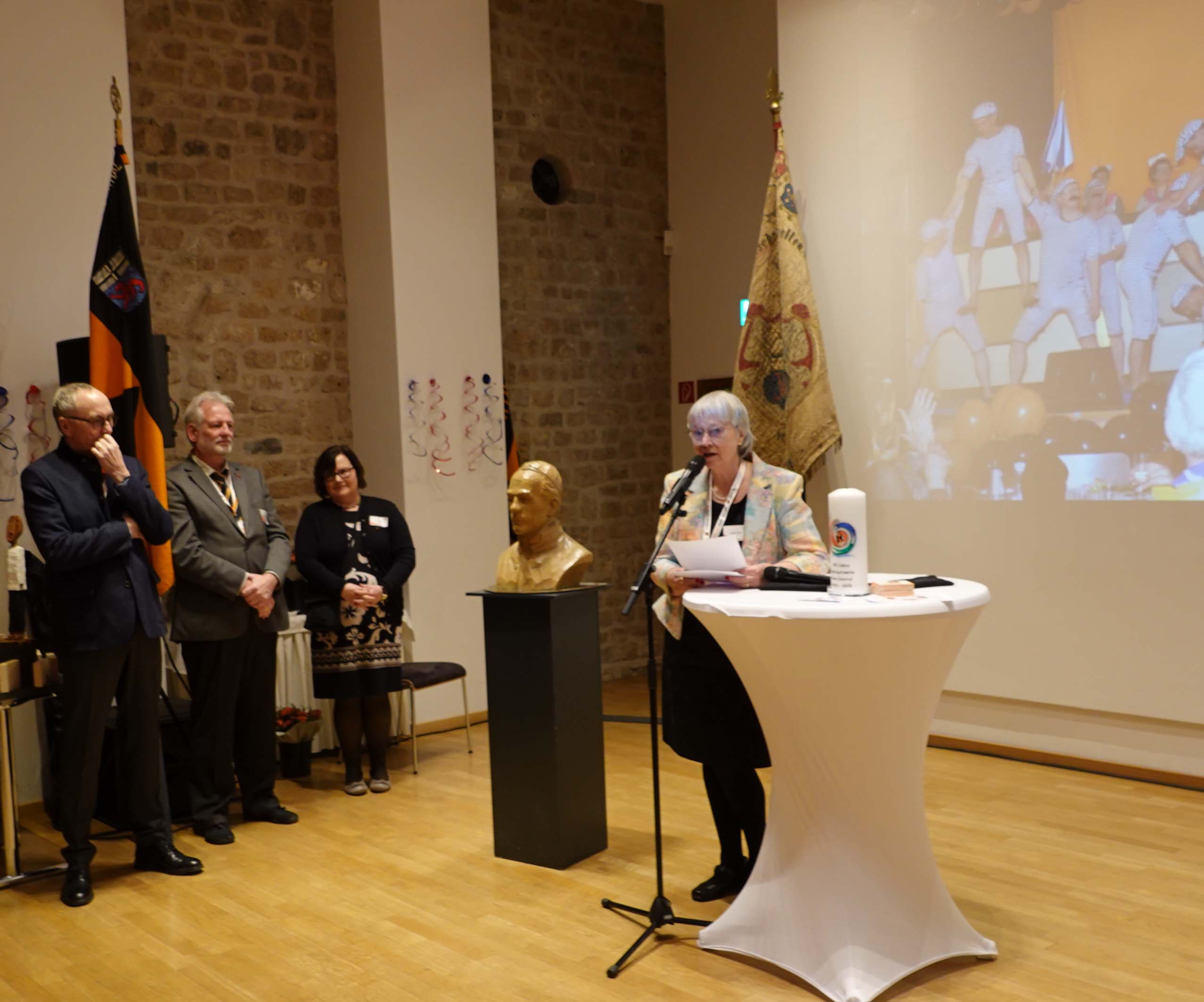 Frau Oberbürgermeisterin Katja Dörner sprach ein Grußwort mit dem launigen Hinweis auf die Rathausverteidigung bei der die Mitglieder der Kolpingsfamilie ihr seit Jahren leider immer erfolglos zur Seite stehen. Dieses Mal werden wir „gewinnen“. Bernd Münzenhofer überbrachte als Vorsitzender die Gratulation vom Kolping Diözesanverband Köln.